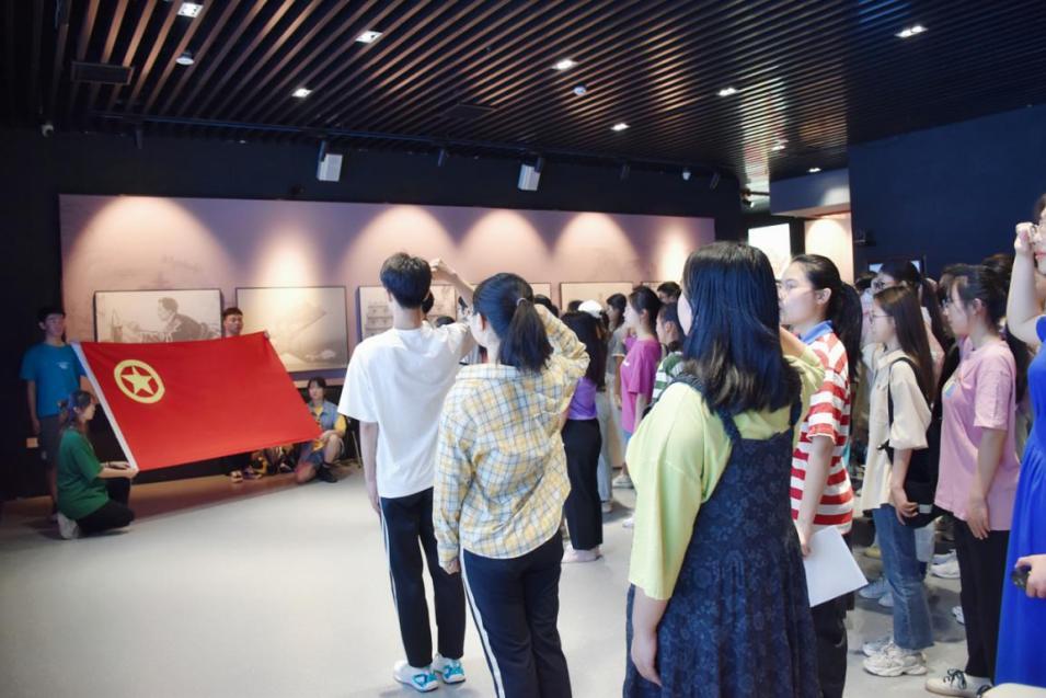 奏唱國歌后,老團員代表為新團員佩戴了團徽并面向團旗莊嚴宣誓。入團介紹人介紹《團章》有關條款,新老團員代表分別發言,校團委兼職副書記陳雅麗代表上級團組織發表講話。宣誓儀式后,新團員進入紅色文化館,實地開展黨史學習教育。